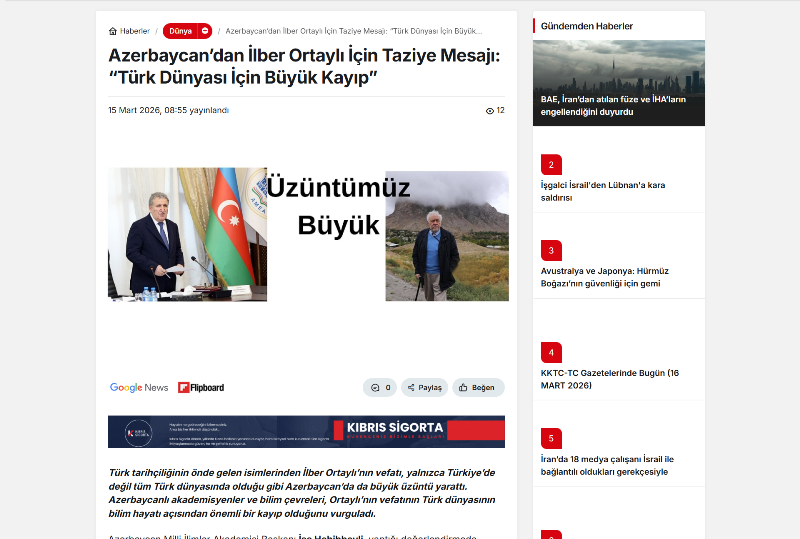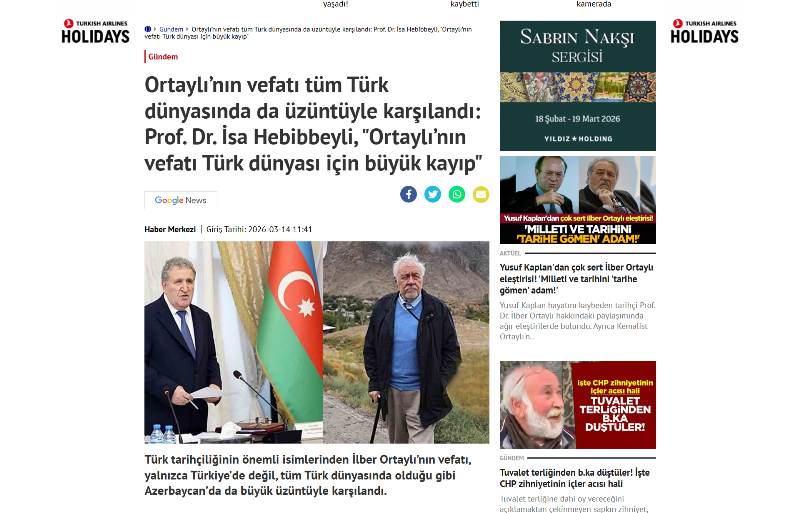 As previously reported, the President of ANAS, Academician Isa Habibbeyli, has extended condolences to the academic institutions of the Republic of Türkiye, Turkish scholars, and the family members of prominent historian and well-known public figure Ilber Ortayli on the occasion of his passing.