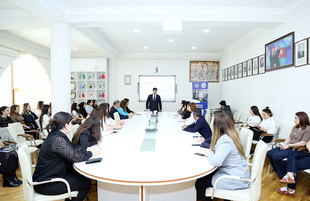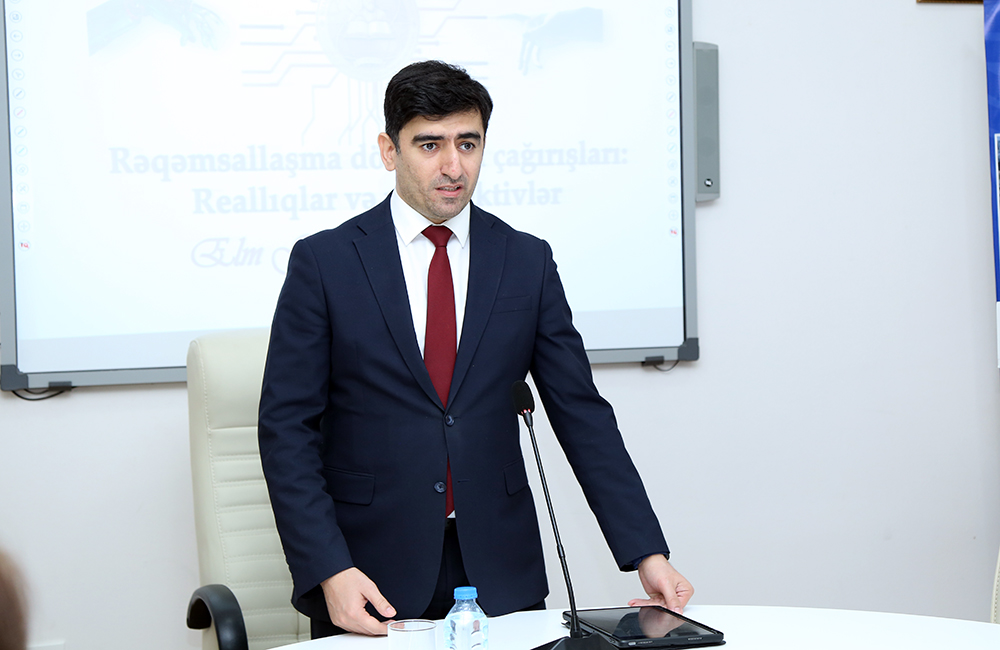 Затем заведующий Отделом цифровой Академии, искусственного интеллекта и электронных услуг аппарата Президиума НАНА доцент Фариз Имранов рассказал о цифровизации и новых вызовах, состоянии электронных версий академических журналов, включении их в международные научные базы, совершенствовании работы в связи с научными платформами.
