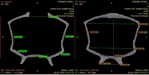 Вышеперечисленное указывает на то, что керамический сосуд не является предметом массового производства, он изготовлен местными мастерами для повседневного использования. В то же время, данные, полученные при помощи КТ, выявили новые научные факты, которые невозможно увидеть во время традиционного визуального осмотра.